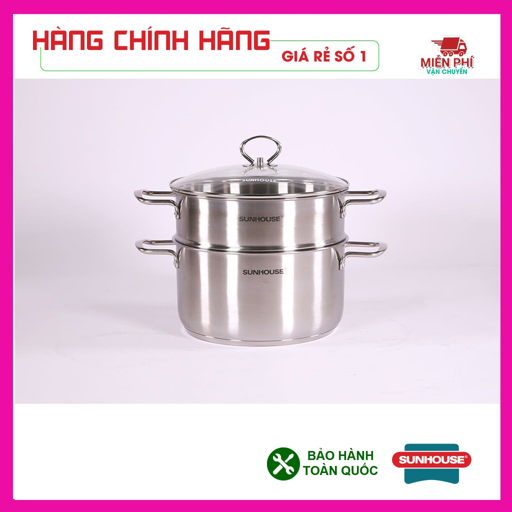 Bộ nồi inox 4 nồi + xửng hấp 3 đáy Sunhouse SH895, bộ nồi Sunhouse dùng cho bếp từ, siêu to khổng lồ
