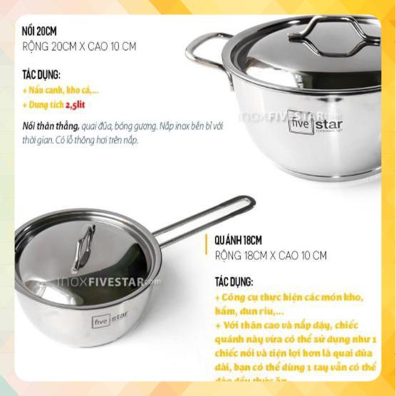 Bộ Nồi Inox 5 Chiếc Fivestar 3 đáy (Nắp Kính & Nắp Inox)