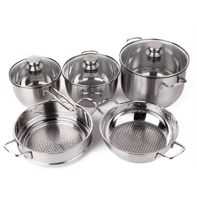 Nhà cửa & Đời sống > Dụng cụ nhà bếp > Nồi || Bộ nồi inox 5 chiếc fivestar (nắp kính) phân phối chính hãng Bonbon MartCòn hàng