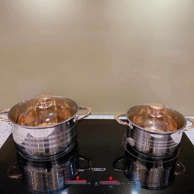 BỘ NỒI INOX ĐÁY 5 LỚP CHEF AND CHEF - GỒM TẬN 6 món 12 chi tiết.Xuất xứ: #ĐỨC - hàng chuẩn 100%