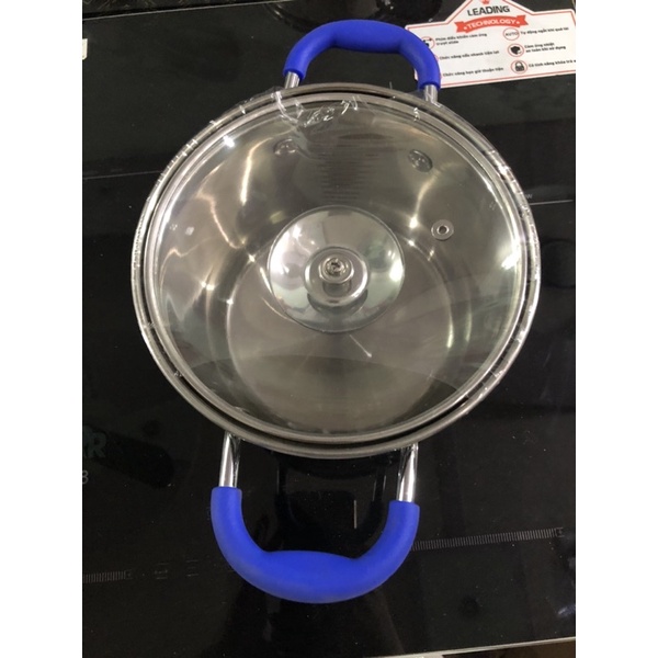 - Tay cầm dạng đũa chắc chắn; nắp kính viền inox bền tốt, giữ nhiệt hiệu quả.