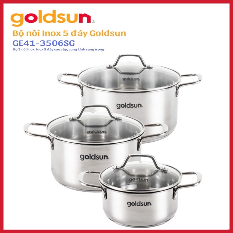Bộ nồi inox 5 đáy Goldsun GE41-3506SG-Đáy Từ- DÙNG CHO TẤT CẢ LOẠI BẾP- HÀNG CHÍNH HÃNG