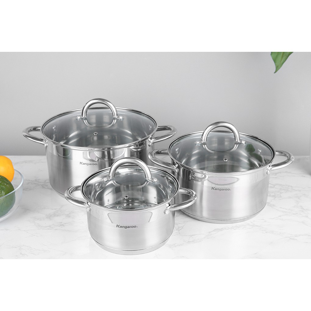 - Bộ nồi inox Kangaroo KG876 là sản phẩm gồm 3 nồi- Kích thước 18 cm, 22 cm và 26 cm