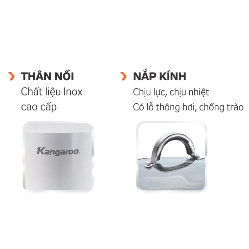 - Bộ nồi inox Kangaroo KG876 sử dụng chất liệu inox cao cấp với nhiều ưu điểm như thu nhiệt nhanh và đảm bảo vệ sinh an toàn thực phẩm.