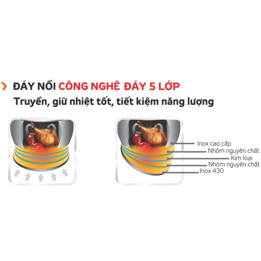 - Bộ nồi inox Kangaroo KG876 có đáy dày 5 lớp giúp truyền giữ nhiệt tốt, và tiết kiệm điện năng.