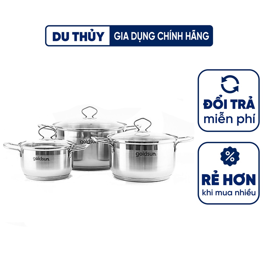 Nhà cửa & Đời sống > Dụng cụ nhà bếp > Nồi || Bộ nồi inox 5 đáy nắp kính Goldsun GE42-3506SG cao cấp hàng chính hãng, inox sáng bóng, vung kính trong suốt chịu nhiệtCòn hàng