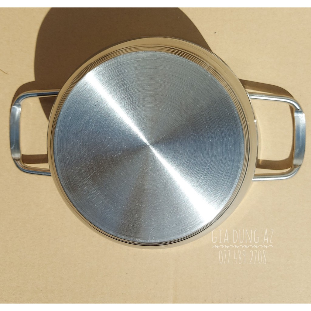 Nồi có cấu tạo từ chất liệu inox cao cấp an toàn tuyệt đối cho sức khỏe. Kết cấu đáy 5 lớp - nhiệt độ được phân bổ khắp đáy nồi giúp thực phẩm chín nhanh chóng. Bộ nồi inox sáng bóng là một điểm nhấn cho không gian bếp thêm phần hiện đại.
