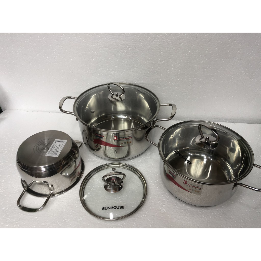 Nhà cửa & Đời sống > Dụng cụ nhà bếp > Nồi || Bộ nồi inox 5 đáy quai inox Sunhouse SH888Còn hàng