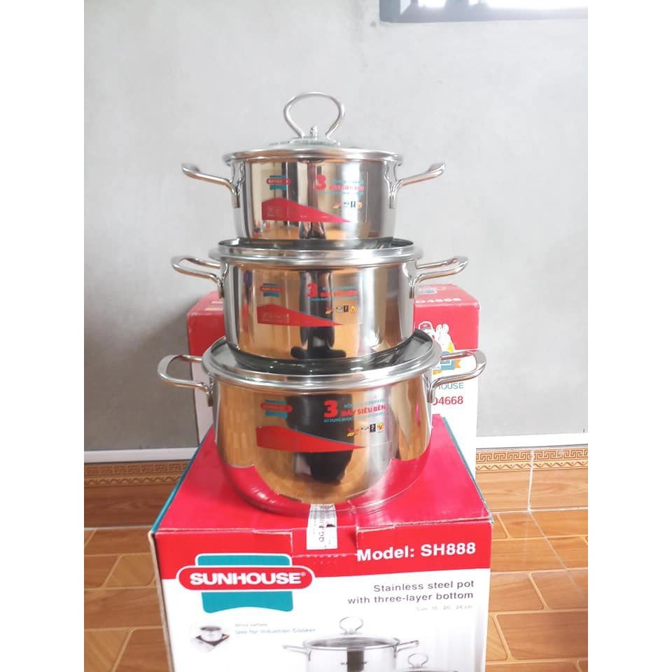 Nhà cửa & Đời sống > Dụng cụ nhà bếp > Nồi || Bộ nồi inox 5 đáy quai inox Sunhouse SH888Còn hàng