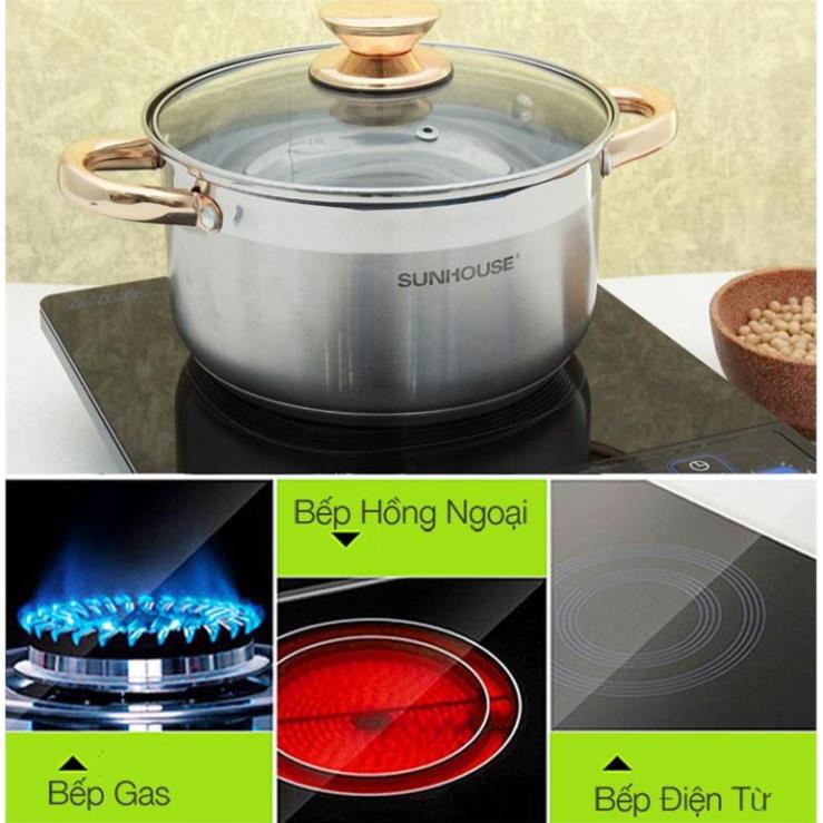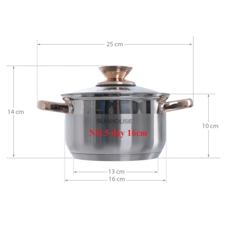 Nồi inox 5 đáy QUAI VÀNG sunhouse Đủ size