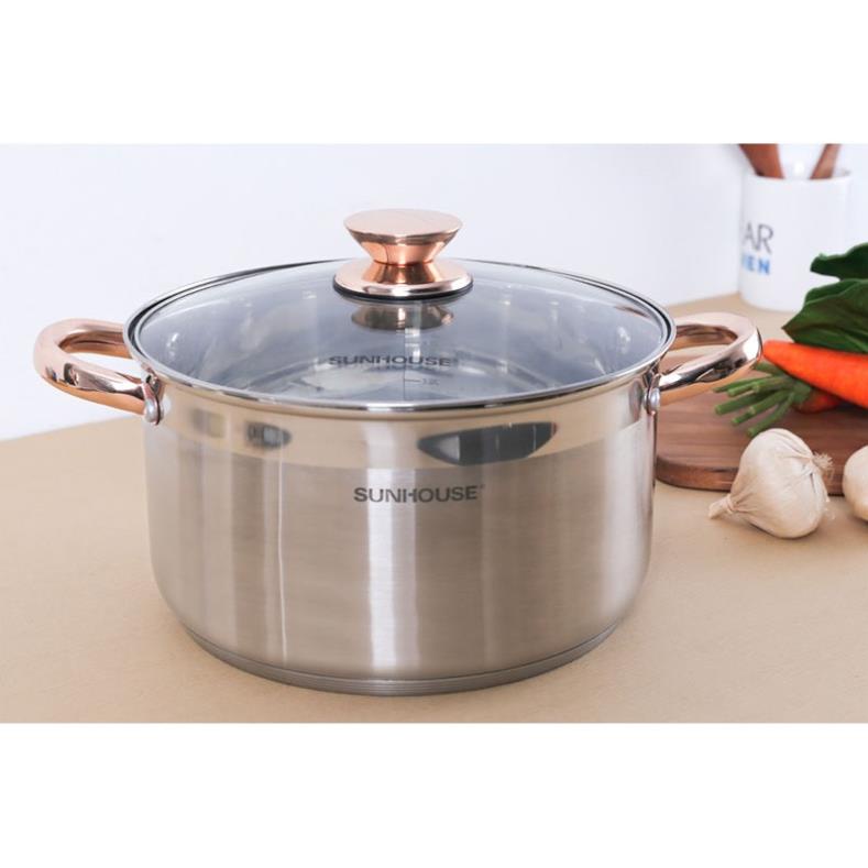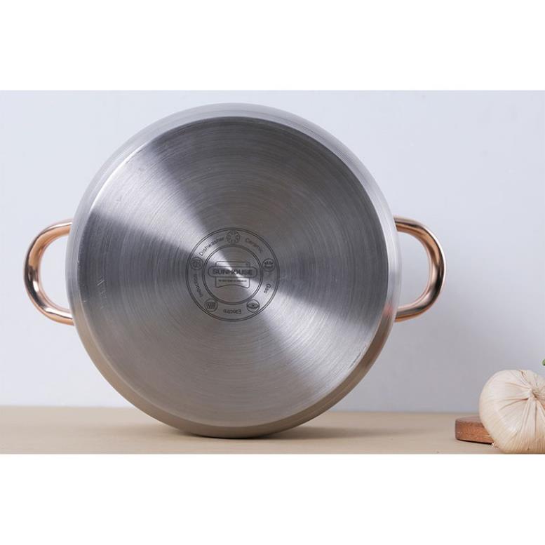 Nồi inox Sunhouse này có 5 đáy hấp thu nhiệt tốt, nấu chín đều thức ăn