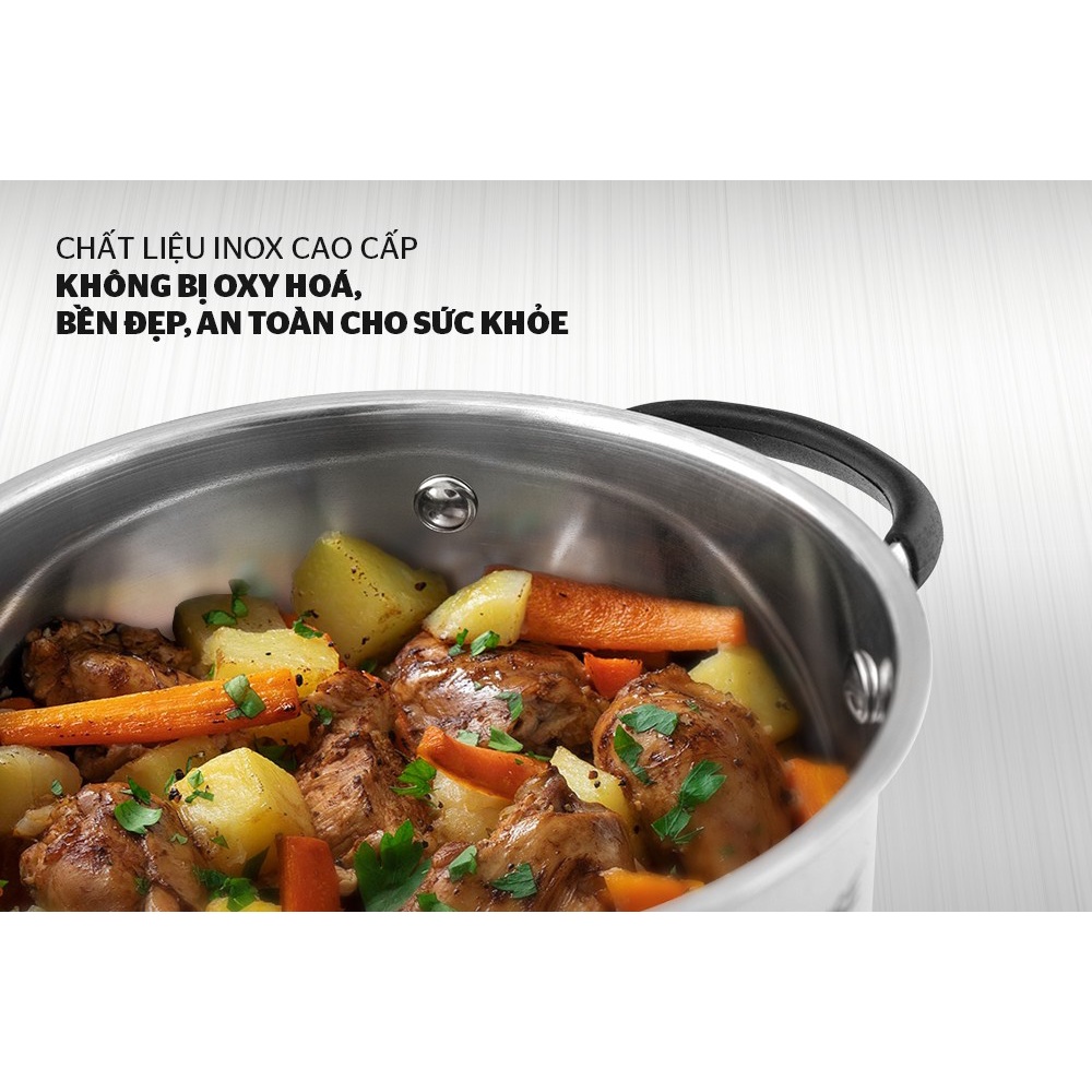 ĐẶC ĐIỂM NỔI BẬTCấu tạo đáy 5 lớp truyền nhiệt nhanh, giữ nhiệt tốt, hạn chế cháy khét thực phẩm
