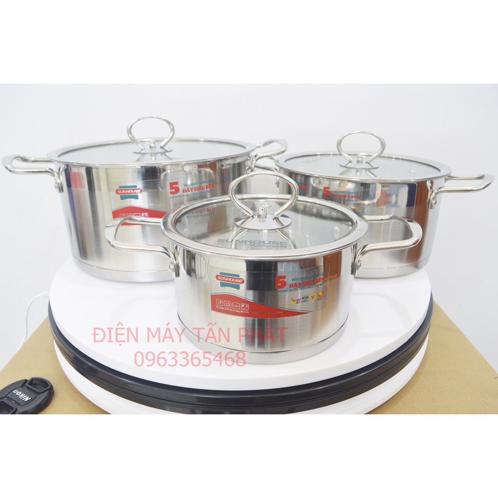 NỒI INOX 5 ĐÁY SUNHOUSE (16-20-24CM) TẶNG 10 KHẨU TRANG 4D