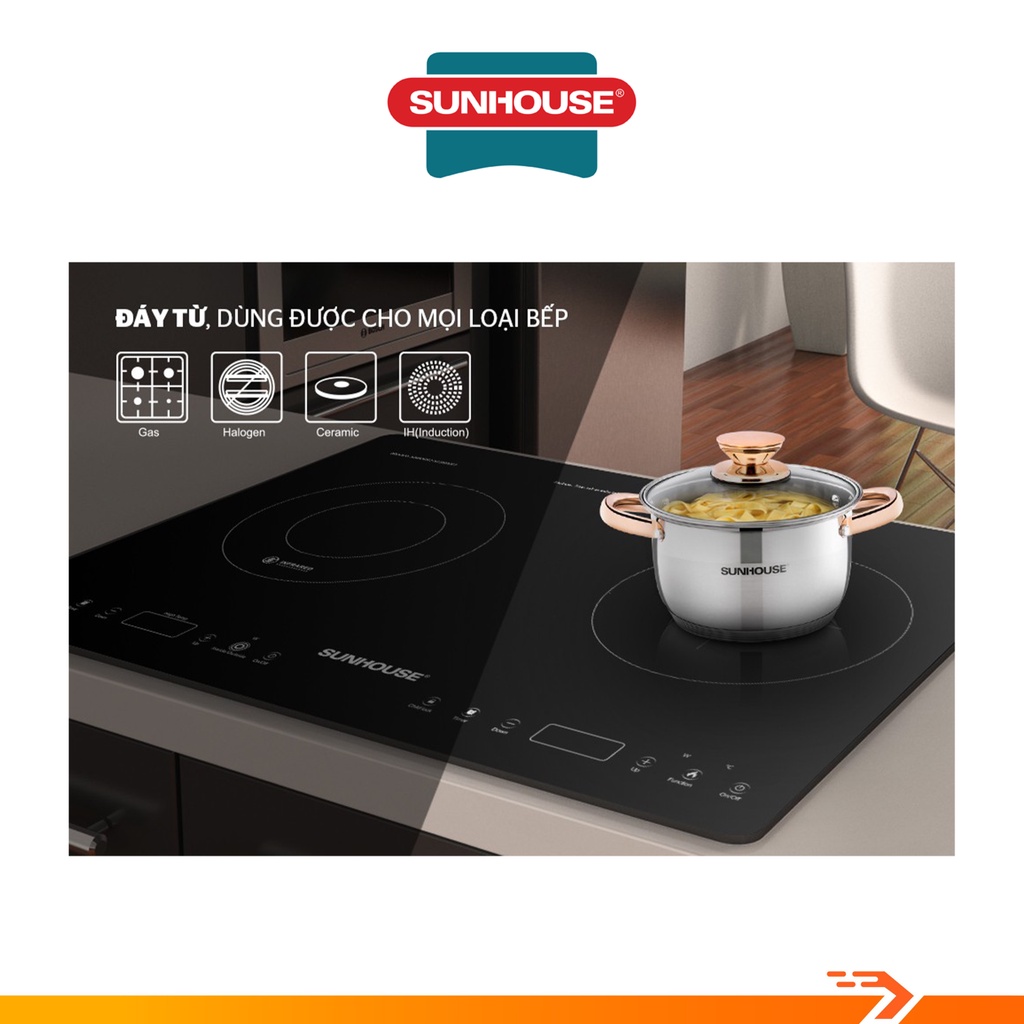 • Nồi inox 5 đáy SUNHOUSE SHG24220 sử dụng được với mọi loại bếp, kể cả bếp từ. Sản phẩm với đường kính 20cm tương đối nhỏ gọn, tiết kiệm diện tích, phù hợp để nấu canh, nấu súp và chế biến thực phẩm dành cho 1-3 người.
