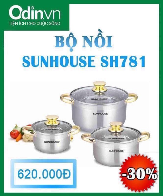 🔆🆘️🔆♻️⚛Thông tin chung: BỘ NỒI INOX 5 ĐÁY SUNHOUSE SH781
