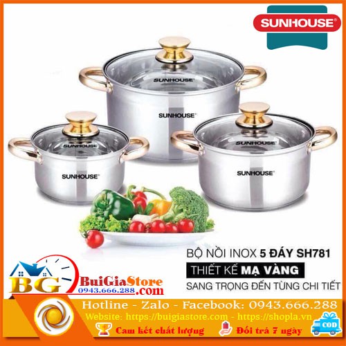 Giới thiệu Bộ nồi inox 5 đáy SUNHOUSE SH781