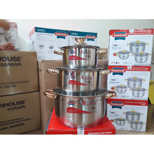 Nhà cửa & Đời sống > Dụng cụ nhà bếp > Nồi || Bộ nồi inox 5 đáy SUNHOUSE SH781 (Dùng cho bếp từ và mọi loại bếp)Còn hàng