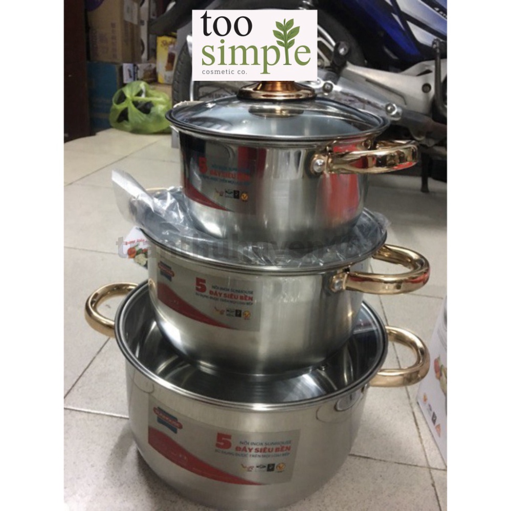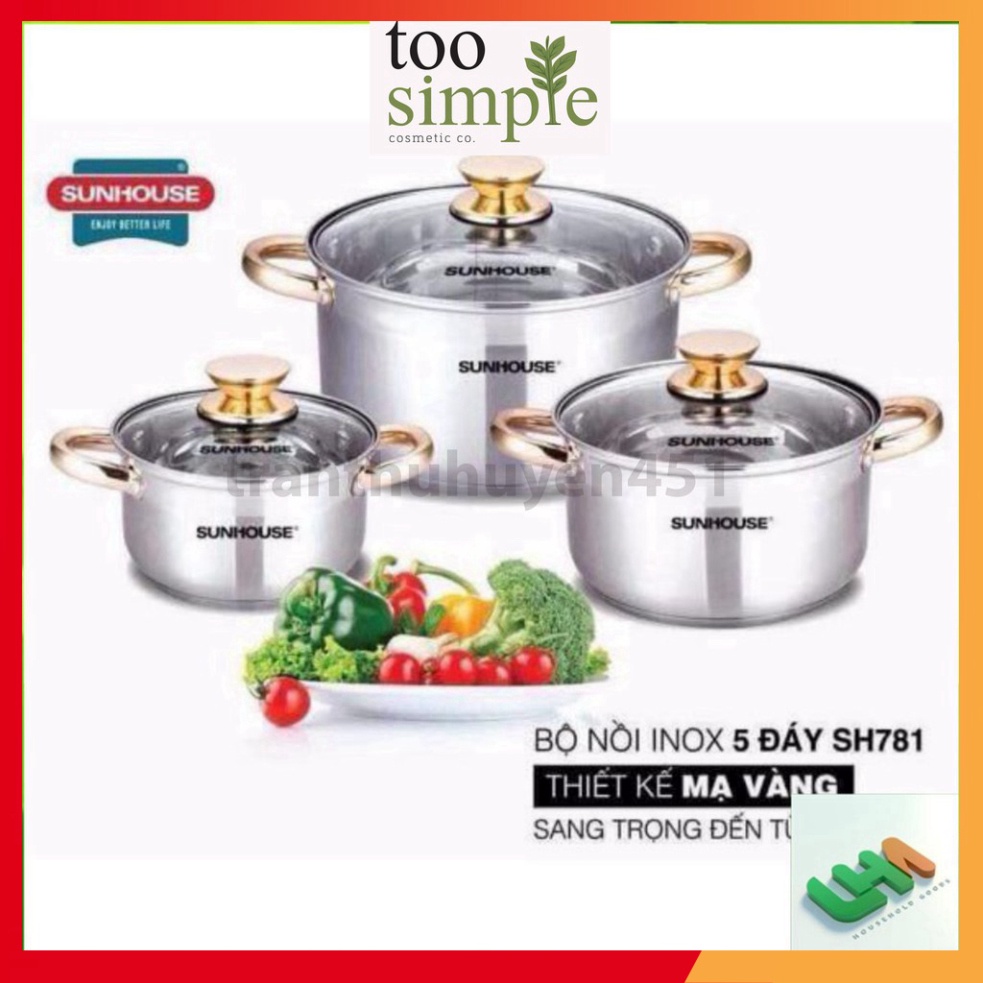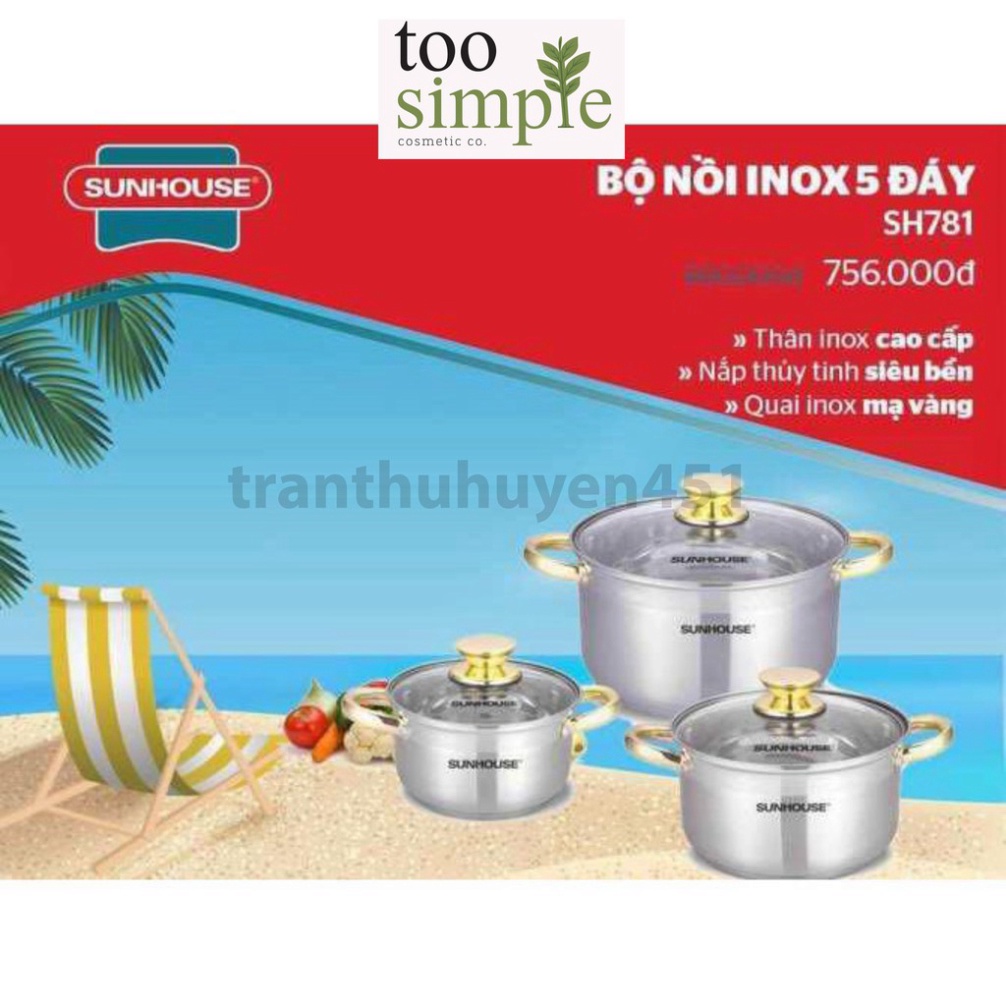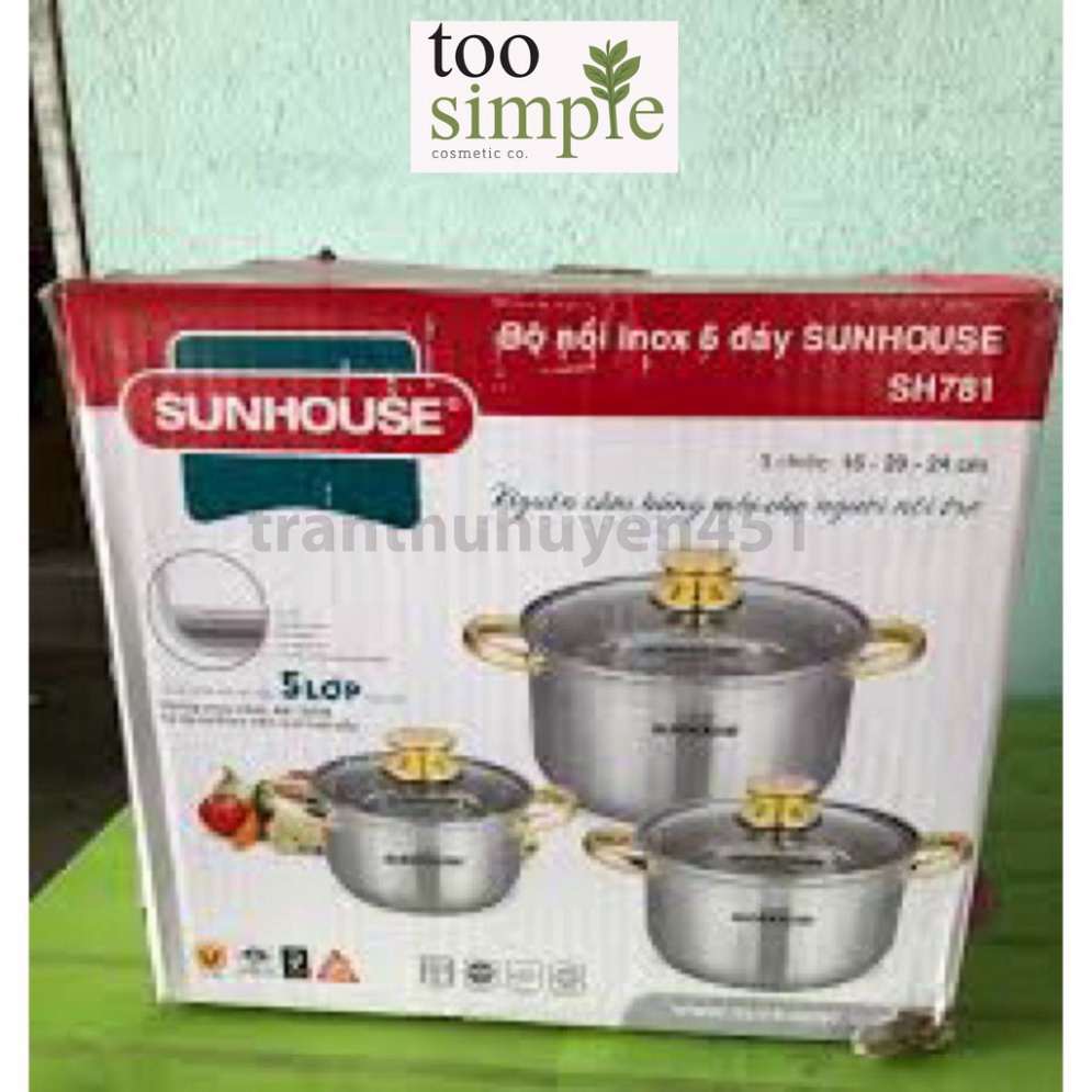Bộ nồi Inox 5 đáy Sunhouse SH7810 dùng được bếp từ dày dặn, sáng bóng, đẹp gồm sz 16,20,24 (ảnh thật ở phía sau)