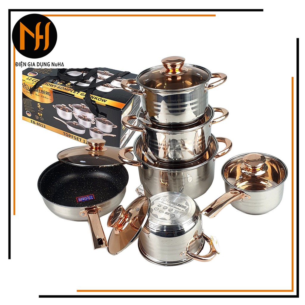 Tên sản phẩm: Bộ nồi 6 món đáy từ Inox cao cấp nắp kính Engelberg và MATIKA dùng cho mọi loại bếp