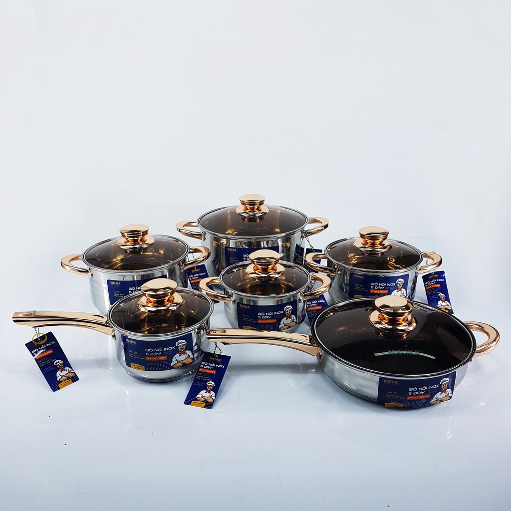 Nhà cửa & Đời sống > Dụng cụ nhà bếp > Nồi || Bộ Nồi inox 5 Đáy Từ 6 Món EB-8013/MATIKA Inox Không Gỉ Kèm Năp Kính Cao Cấp Dùng Cho Mọi Loại Bếp, có phân loại lẻ sizeCòn hàng