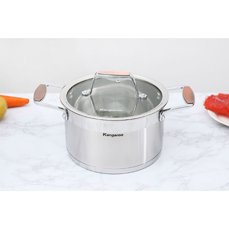 Nồi inox Kangaroo KG3CS222 không kén loại bếp sử dụng, có thể dùng trên bếp từ, bếp gas, bếp điện, bếp hồng ngoại và bếp halogen.
