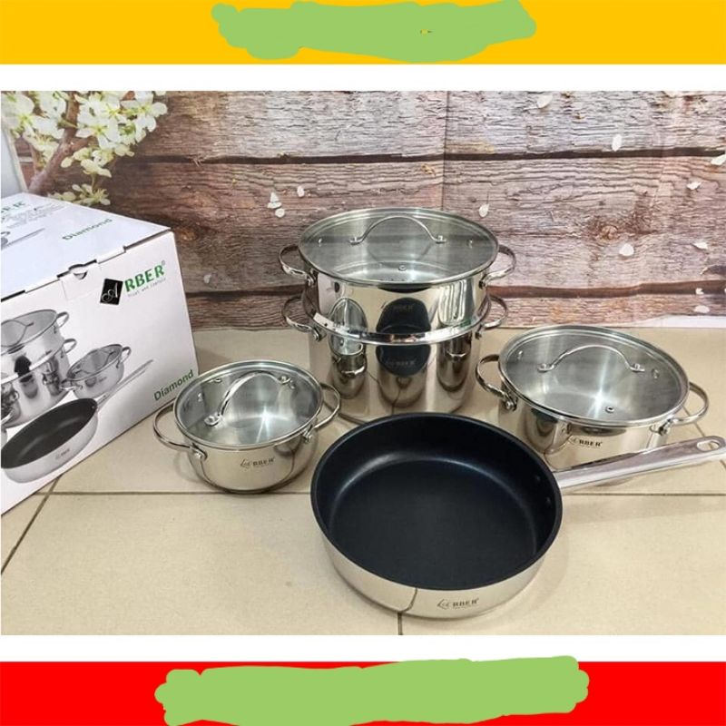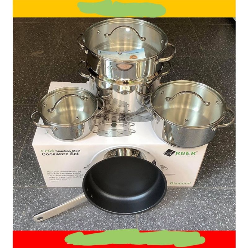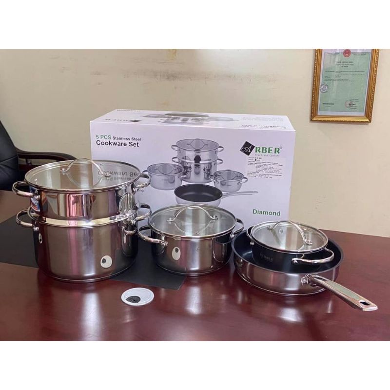 Bộ nồi inox 5 món cao cấp kèm xửng hấp ARBER Diamond