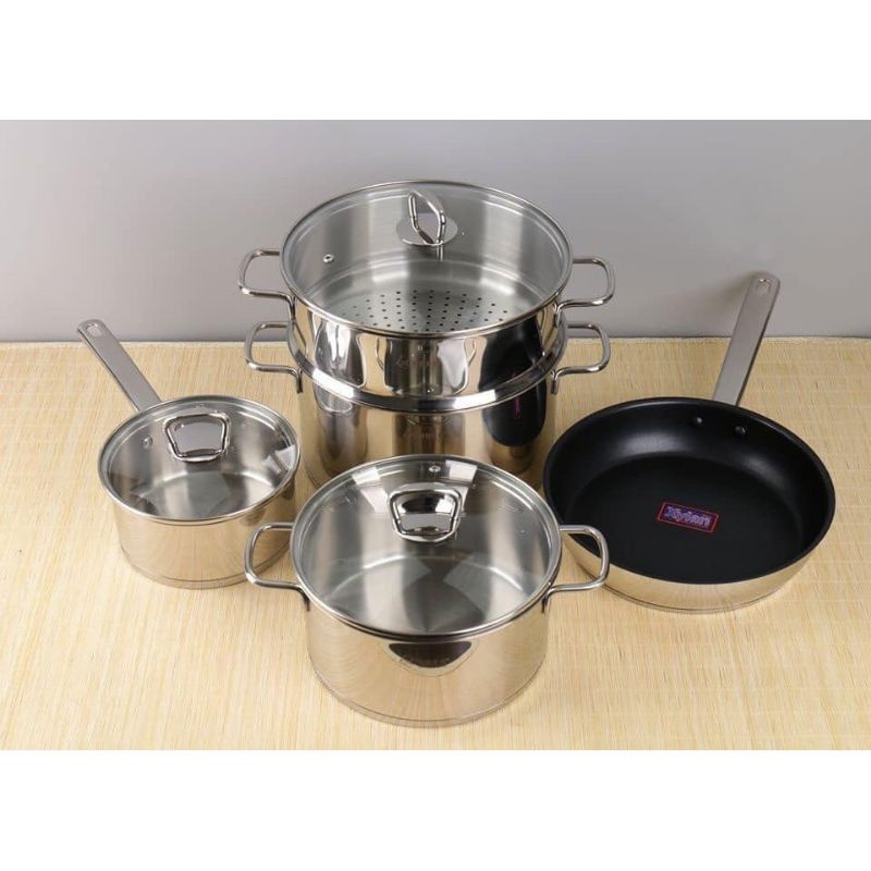 Nhà cửa & Đời sống > Dụng cụ nhà bếp > Nồi || Bộ nồi inox 5 món cao cấp kèm xửng hấp ARBER DiamondCòn hàng