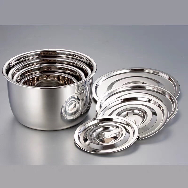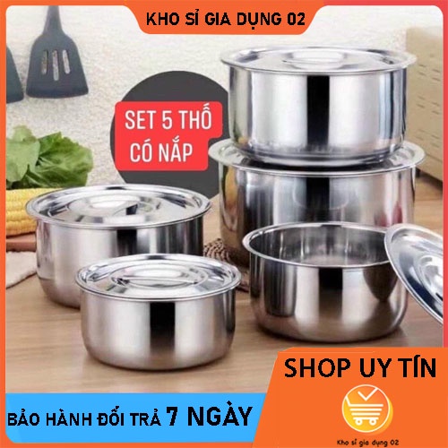 Tên sản phẩm: Bộ 5 Thố Inox Không Quai Có Nắp Đậy Đủ Kích Thước Cao CấpChất liệu: inox cao cấp