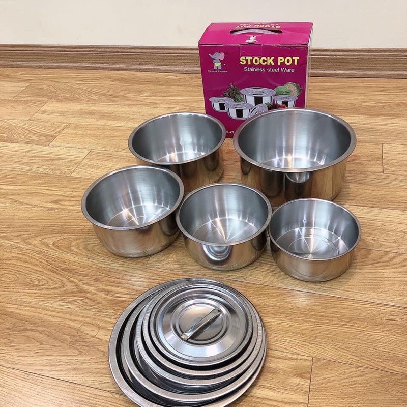 Bộ Nồi Inox 5 Món STOCK POT Không Quai Đủ Kích Cỡ Siêu Tiện Lợi Đa Năng