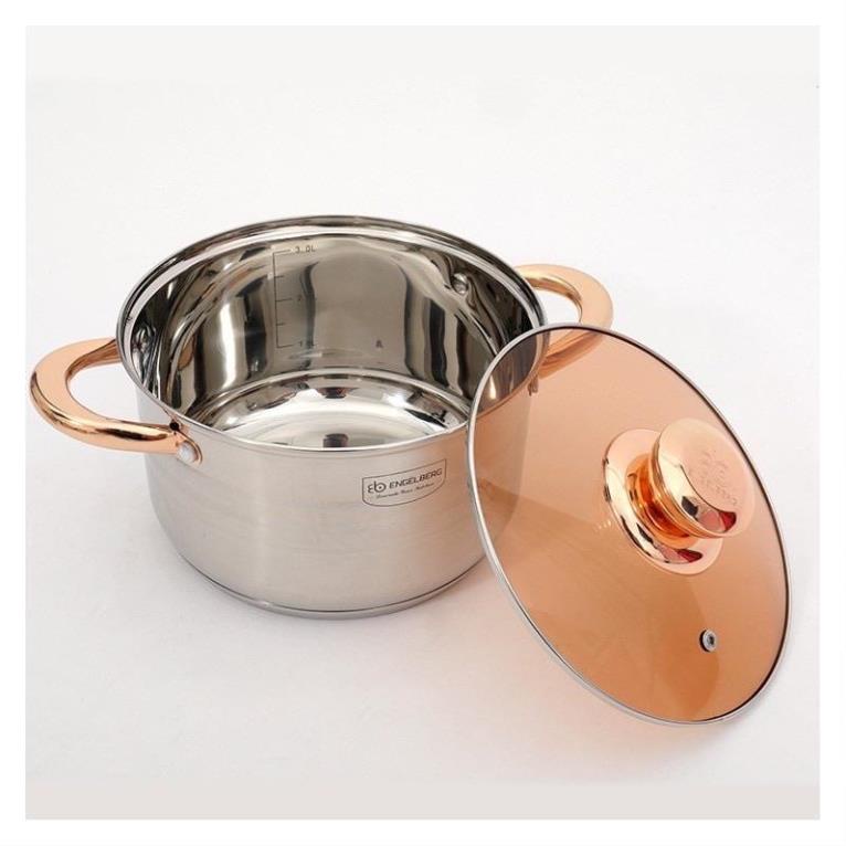 Bộ Nồi Inox 6 Món 5-9 Đáy 12 Chi Tiết, Chống Dính Đức CHEF&CHE/ ENGELBER/KaisaVila- Ko Gỉ Kèm Năp Kính, Dùng Mọi Bếp
