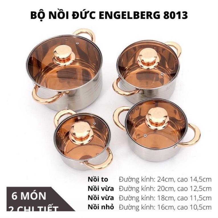 [SỈ RẺ] Bộ Nồi Inox 6 Món 5-9 Đáy 12 Chi Tiết, Chống Dính Cao Cấp Công Nghệ Đức CHEF&CHE/ ENGELBER/Kaisa Villa- Không Gỉ Kèm Năp Kính, Dùng Mọi Loại Bếp-------