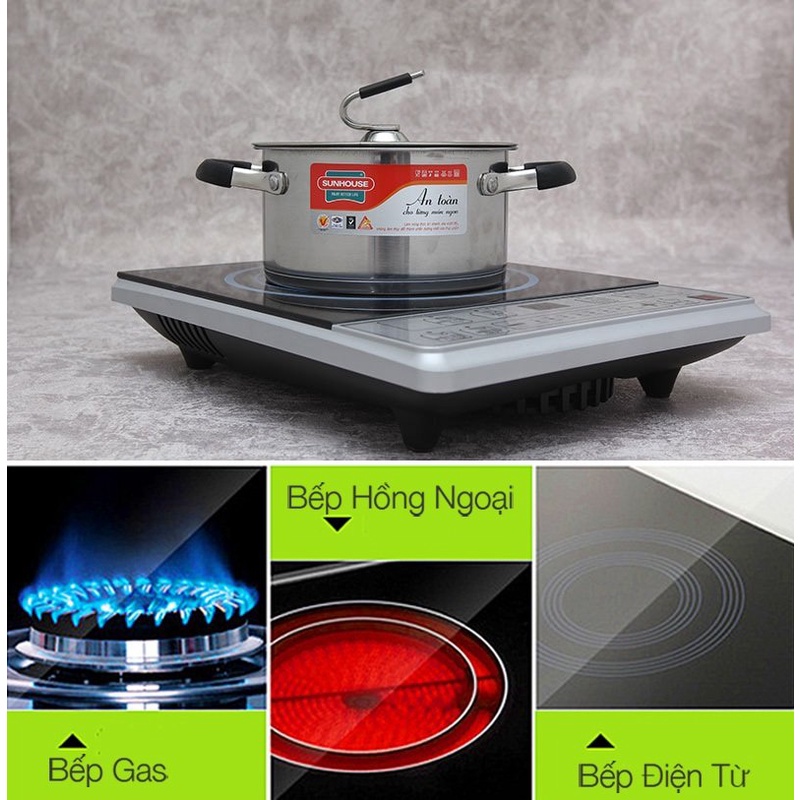 Giới thiệu Nồi inox bếp từ 3 đáy nắp kính SUNHOUSE 16 20 24 26 CM Siêu Dày (dùng được mọi loại bếp) Mới 100% Chính Hãng Bảo Hành