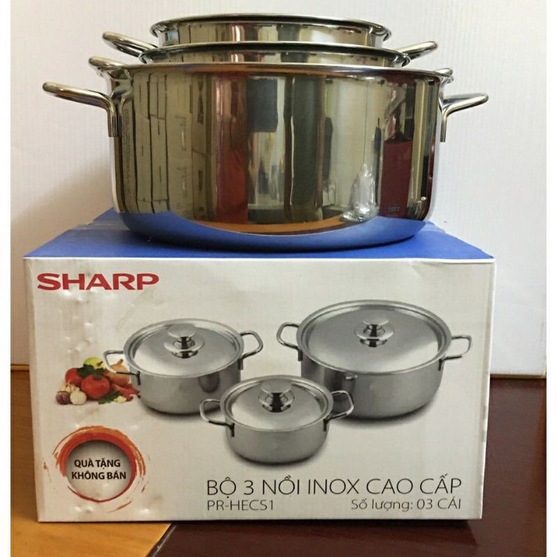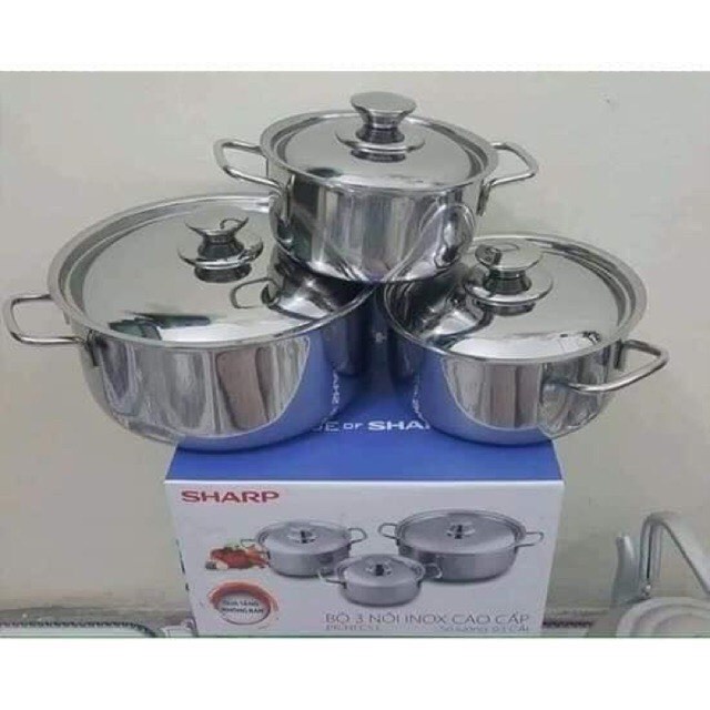 Nồi inox bộ 3 cái dùng được bếp từ, Bộ nồi Sharp inox Size 16,20,24cm