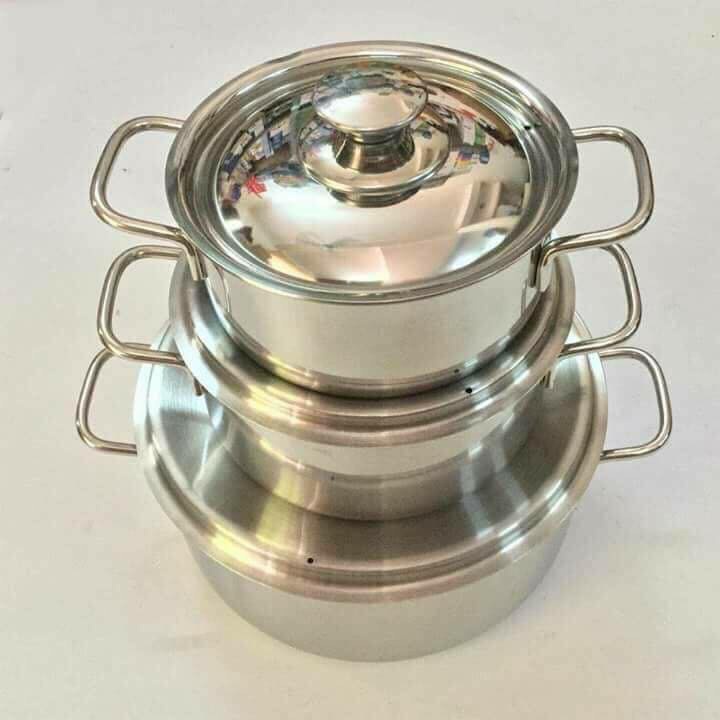 Nhà cửa & Đời sống > Dụng cụ nhà bếp > Nồi || Nồi inox bộ 3 cái dùng được bếp từ, Bộ nồi Sharp inox Size 16,20,24cmCòn hàng