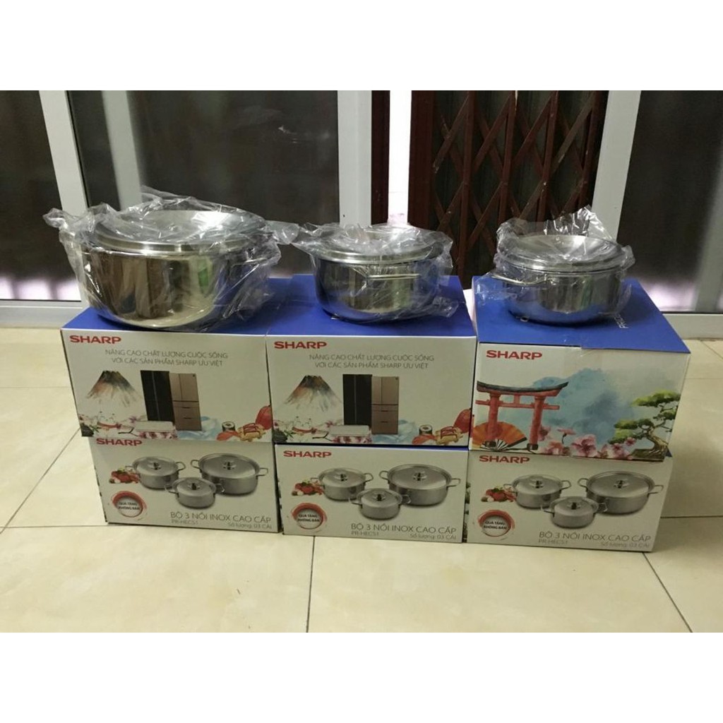 Nhà cửa & Đời sống > Dụng cụ nhà bếp > Nồi || Nồi Inox, Bộ 3 Nồi inox Sharp Dày Đẹp Đun Được Trên Các Loại BếpCòn hàng