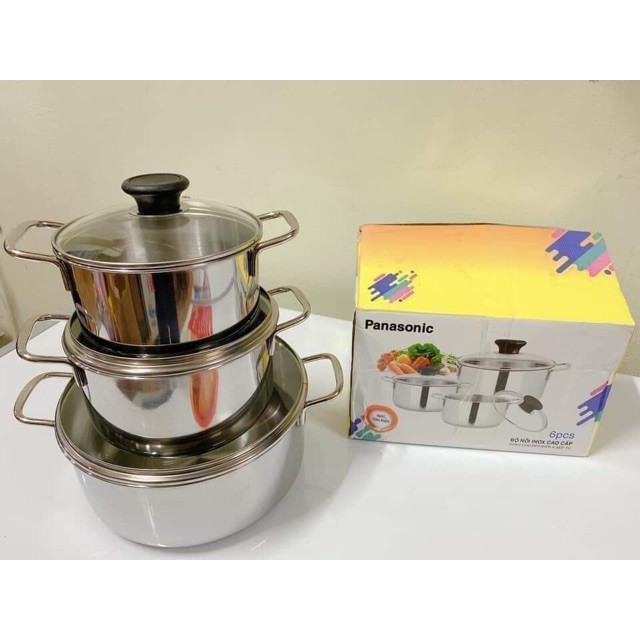 Nồi Inox, Bộ Nồi Panasonic Gồm 3 Chiếc, Chiếc Liệu Inox, Bền Và ĐẹpCAM KẾT