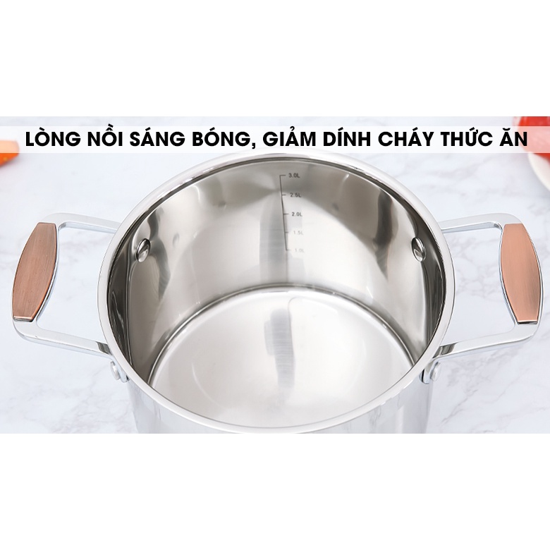Nồi Kangaroo KG3CS226 sử dụng chất liệu inox cao cấp với nhiều ưu điểm như thu nhiệt nhanh và đảm bảo vệ sinh an toàn thực phẩm.