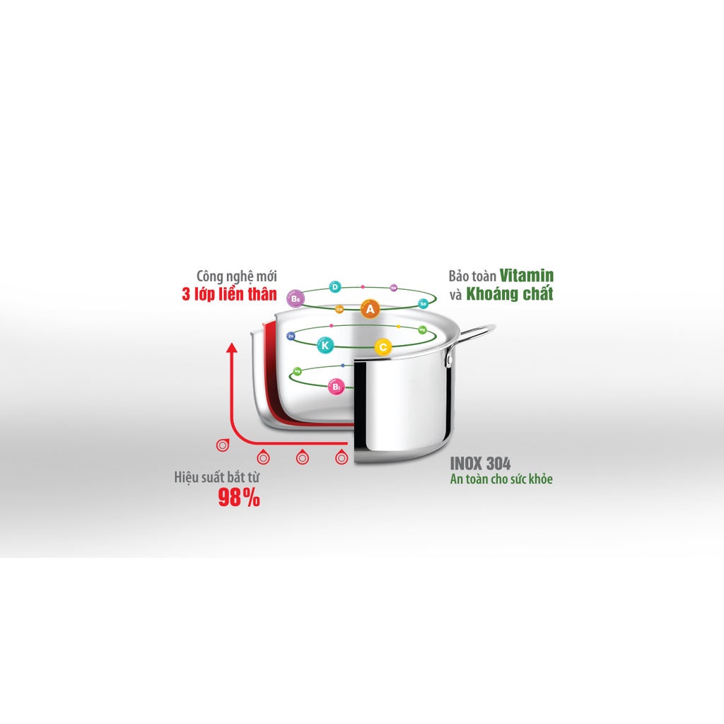 Đáy nồi: Đáy từ, sử dụng trên mọi loại bếp