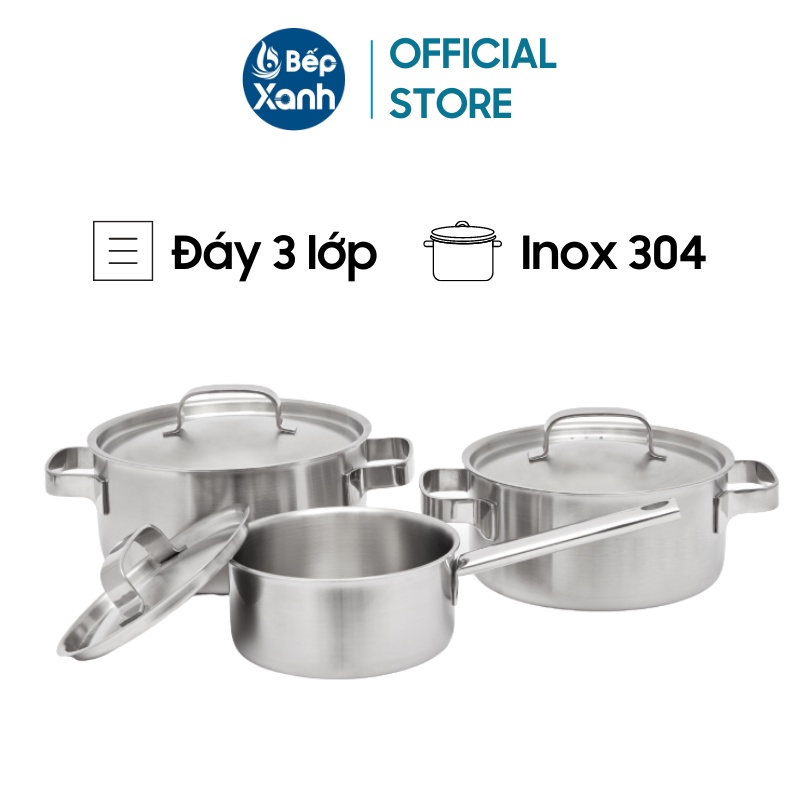 Kích thước: Ø22cm (Nồi lớn), Ø20cm (Nồi trung), Ø16cm (Quánh).