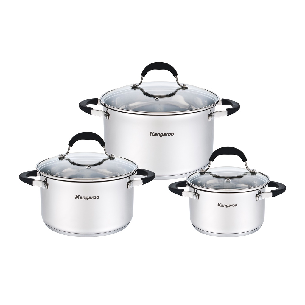 Bộ nồi inox Kangaroo KG3CS3 sử dụng chất liệu inox cao cấp với nhiều ưu điểm như thu nhiệt nhanh và đảm bảo vệ sinh an toàn thực phẩm.