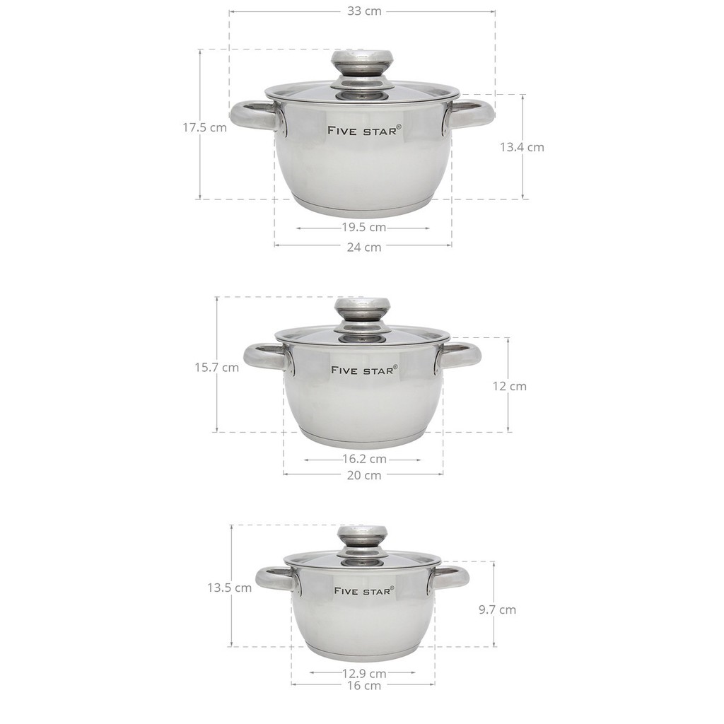 Bộ Nồi Inox Cao Cấp Five Star Cool 3 chiếcBỘ 3 NỒI : 16CM - 20CM - 24 CM
