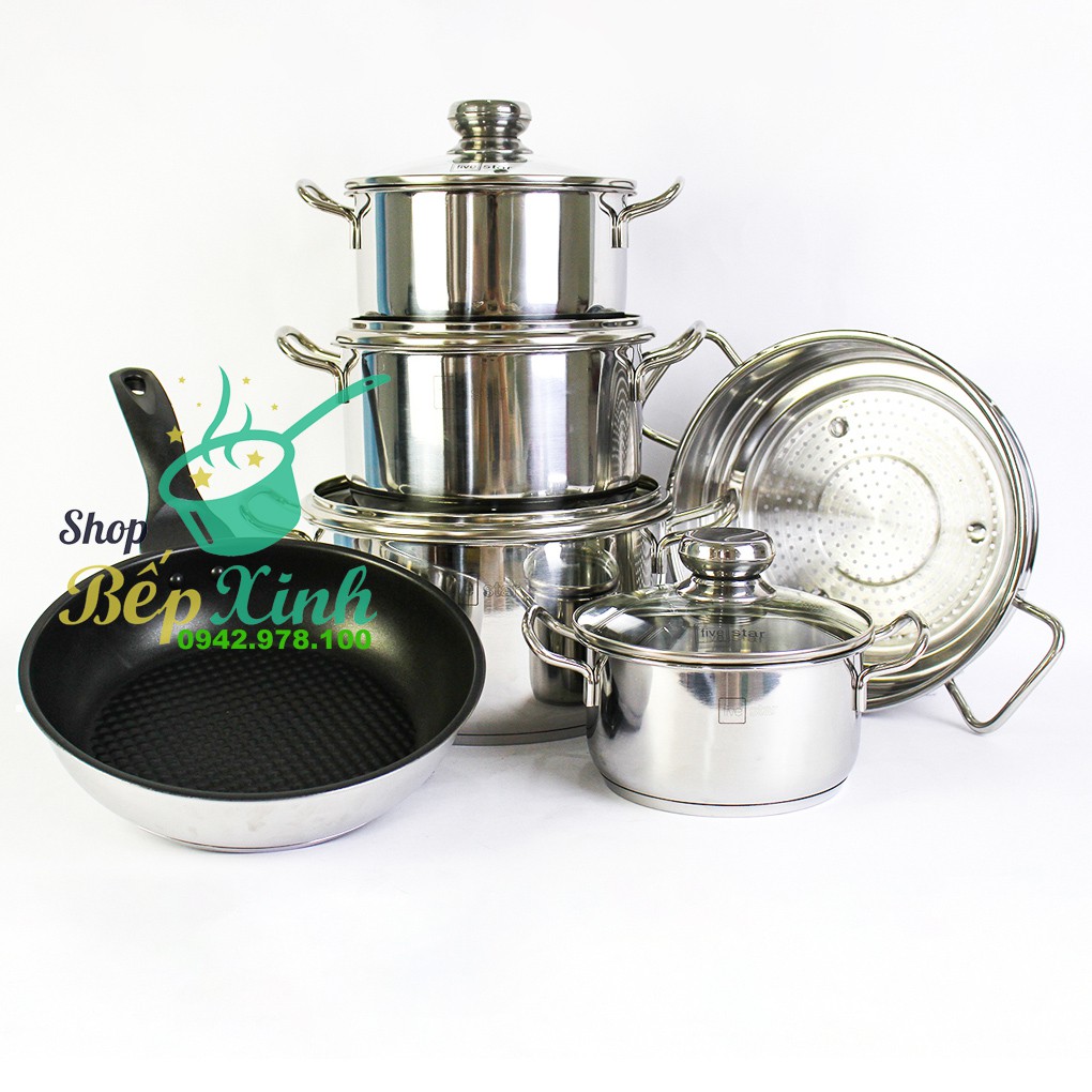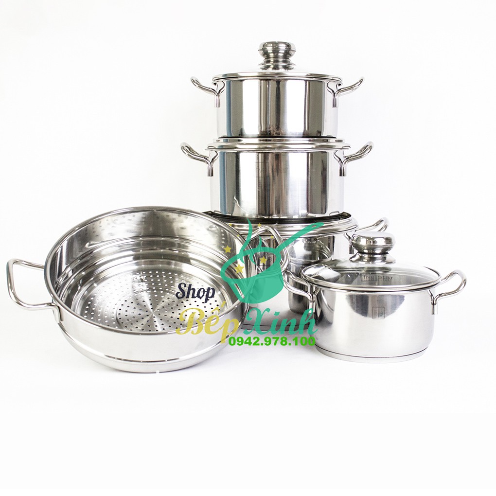 #bộnồiinoxBộ nồi xửng #chảo FIVESTAR Standard 3 đáy 6 chiếc inox 430 nắp kính