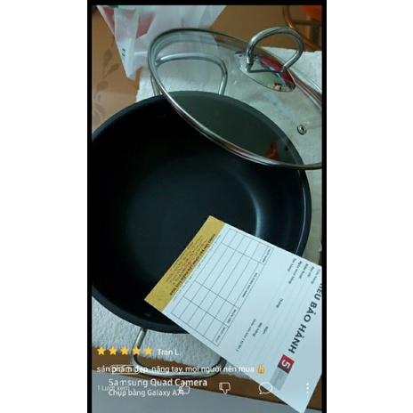 Đáy nồi 3 lớp chống cháy khét, lòng chảo được tráng lớp chống dính giúp chiên thực phẩm không bị dính.