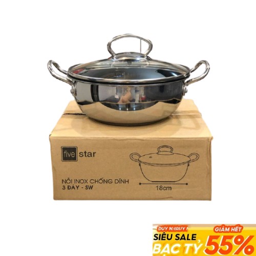 Trình làng siêu phẩm🍲🍲🍲 Nồi inox cao cấp quai đũa 3 đáy 18cm FIVESTAR
