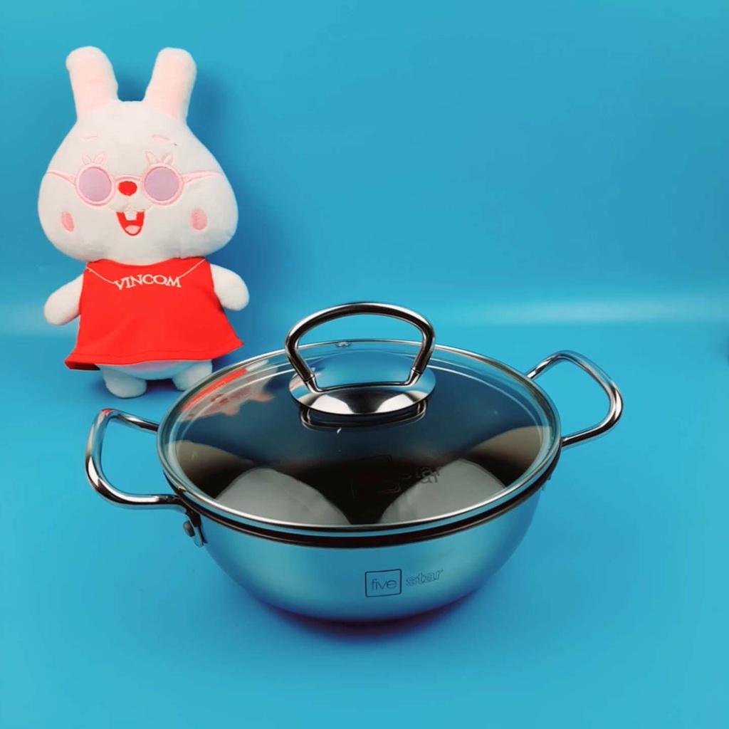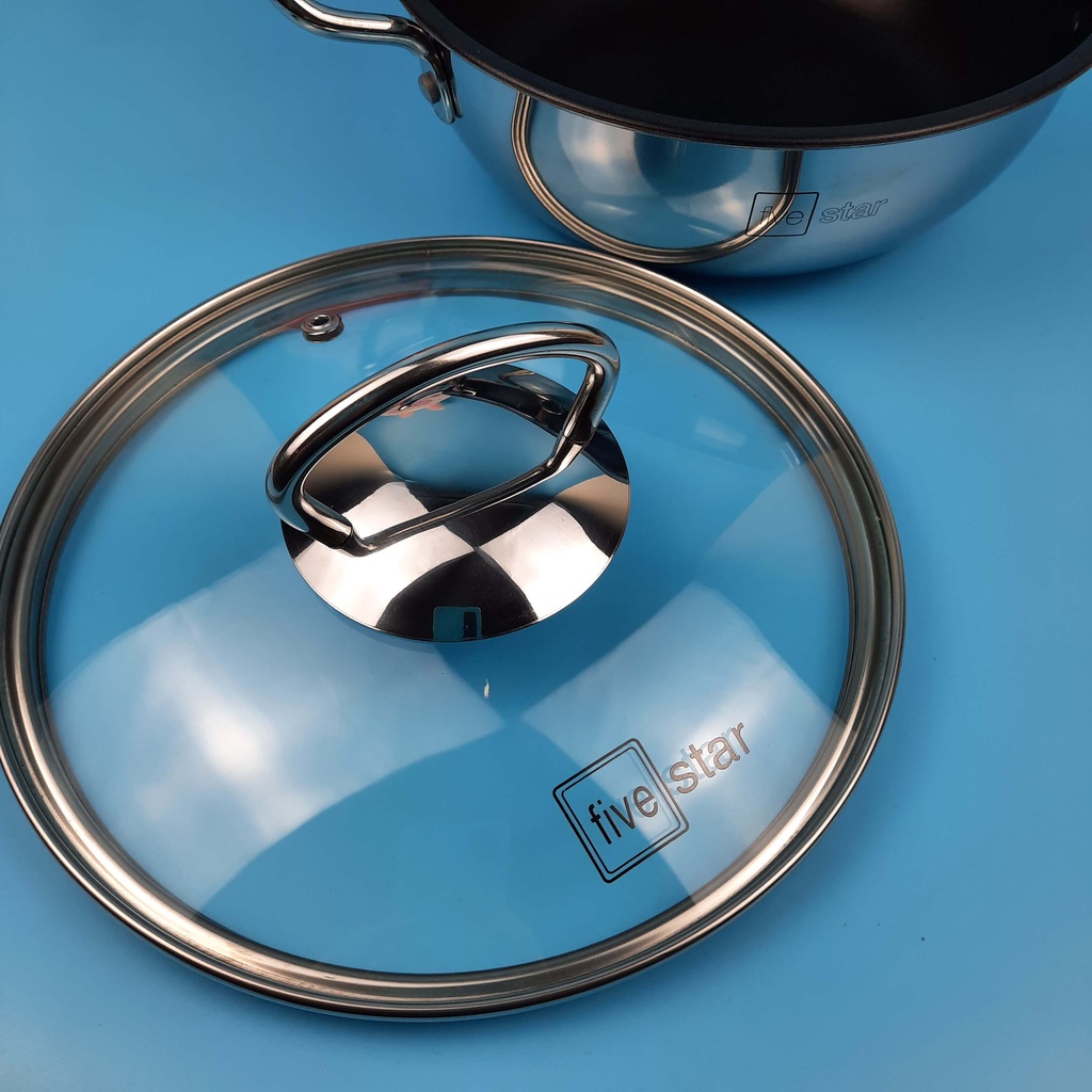 Nồi Inox chống dính Fivestar 3 đáy cao cấp vung kính đáy từ dùng kho cá, chiên ngập dầu 16 18 20 22cm