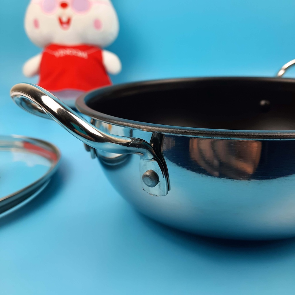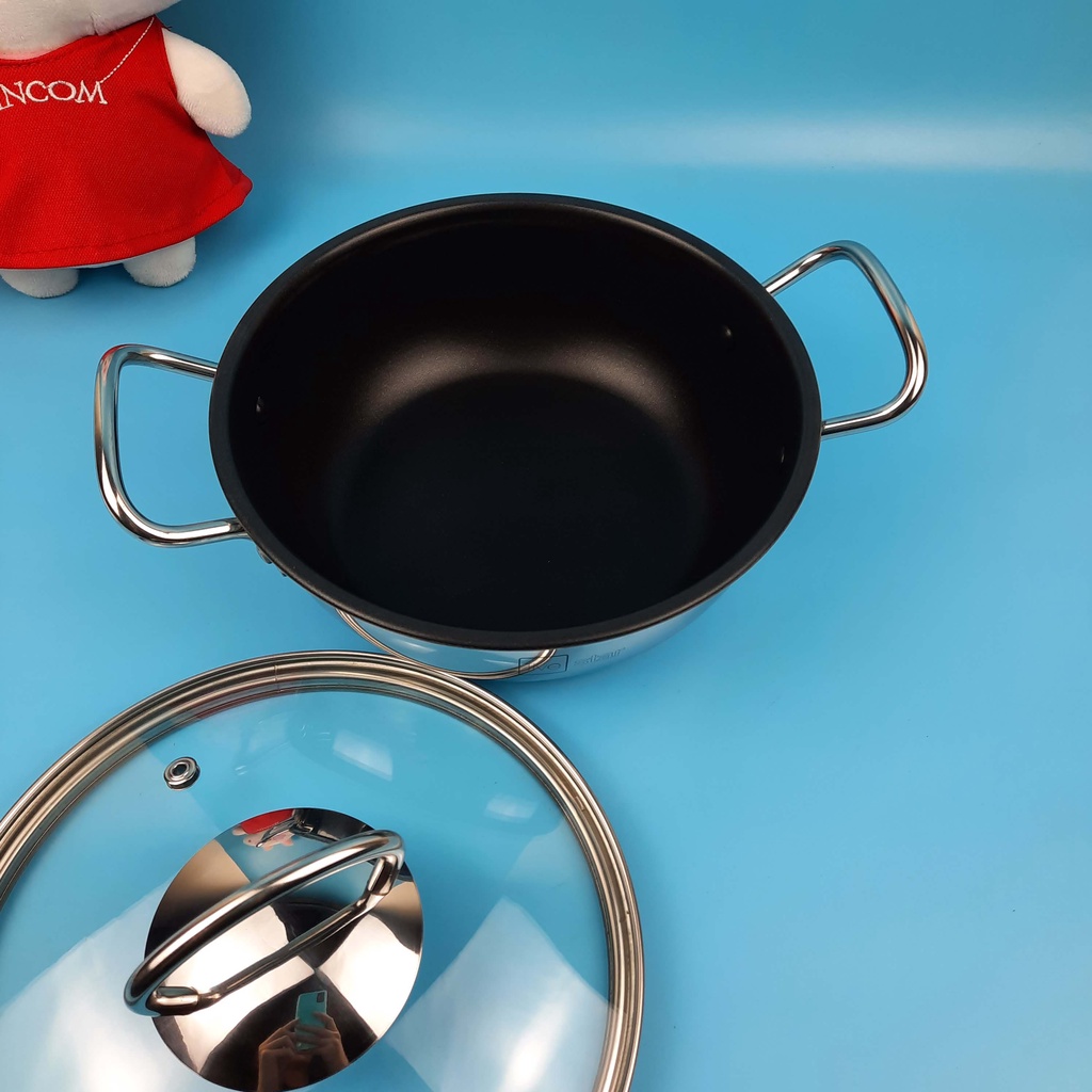Nồi chống dính 3 đáy inox 430 Fivestar standard bếp từ nắp kính!