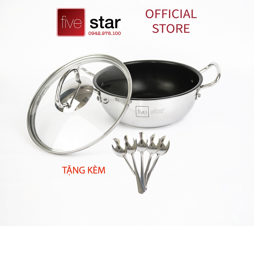 Nhà cửa & Đời sống > Dụng cụ nhà bếp > Nồi || Nồi inox chống dính Fivestar nắp kính inox 430 dùng kho cá , chiên , xào , tặng 5 muỗng ăn ( 18cm / 20cm / 22cm )Còn hàng