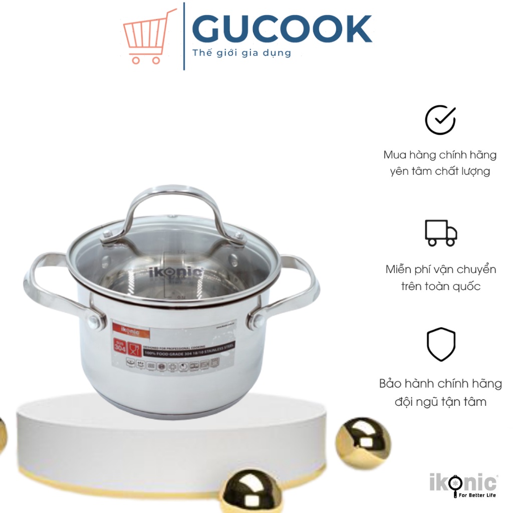 Nhà cửa & Đời sống > Dụng cụ nhà bếp > Nồi || Nồi Inox có nắp kính IKONIC IK55 Siêu bền Inox 304 18/10 chống ăn mòn, đáy nồi 5 lớp dùng cho mọi loại bếp, quai tiện lCòn hàng