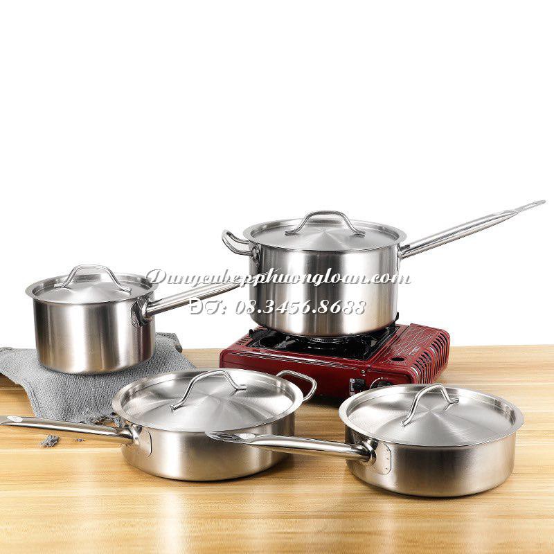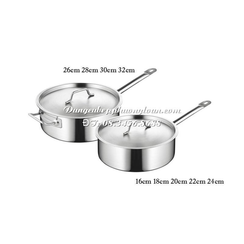 Nồi Inox có tay cầm thấp chuyên dùng cho bếp Âu 16cm, 18cm, 20cm, 22cm, 24cm, 26cm, 28cm, 30cm dùng được trên bếp từ