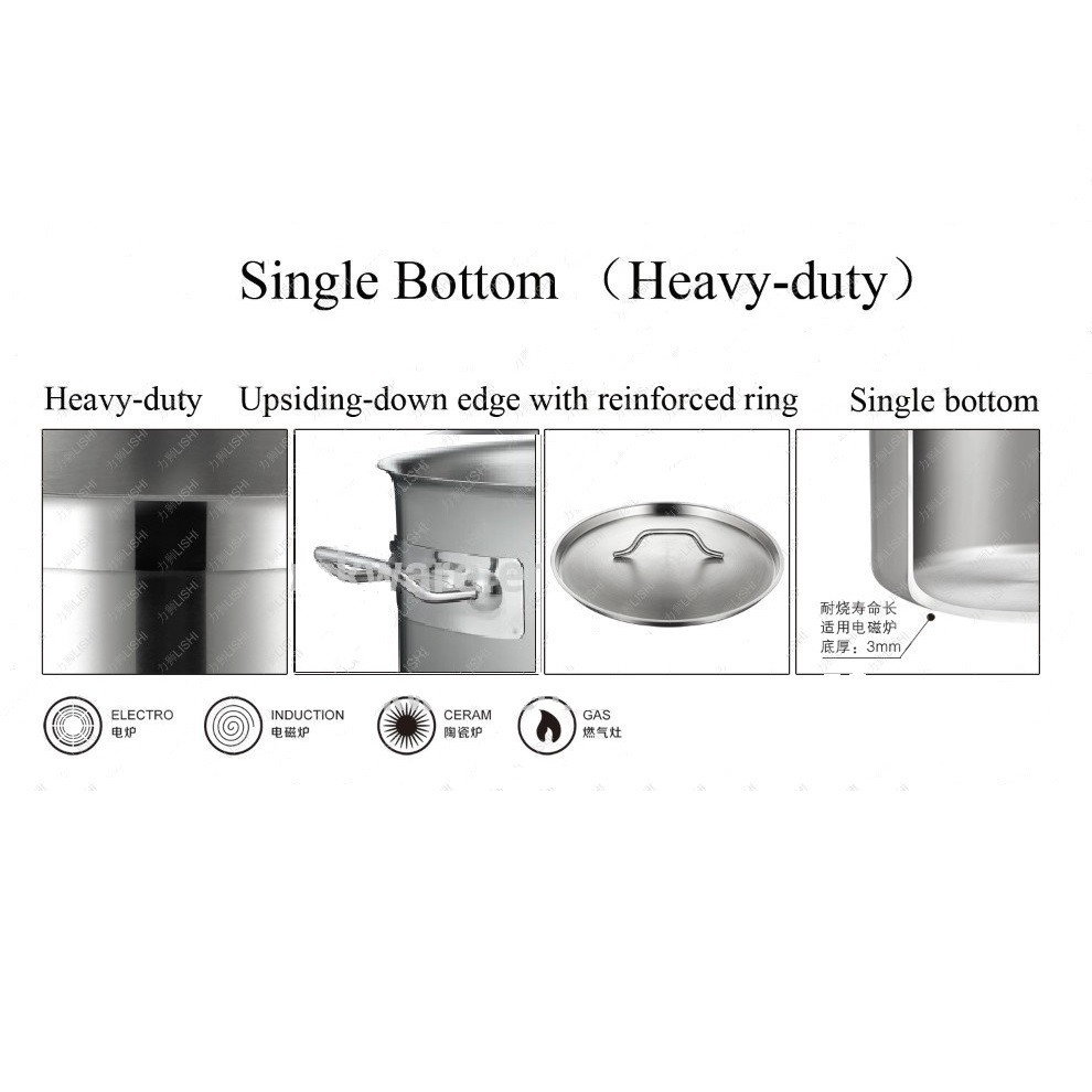 Được làm bằng chất liệu thép không gỉ 18/10 cao cấp không gây phản ứng hóa học với thức ăn nên an toàn cho sức khỏe người dùng, sản phẩm luôn sáng bóng và không xỉn màu.Nồi inox có cán tay cầm với đáy 3 lớp, được áp dụng công nghệ mới giúp dẫn nhiệt nhanh, tỏa nhiệt đều và giữ nhiệt ổn định trong suốt quá trình nấu ăn. Nồi sử dụng được bếp từ, bếp gas và các loại bếp.